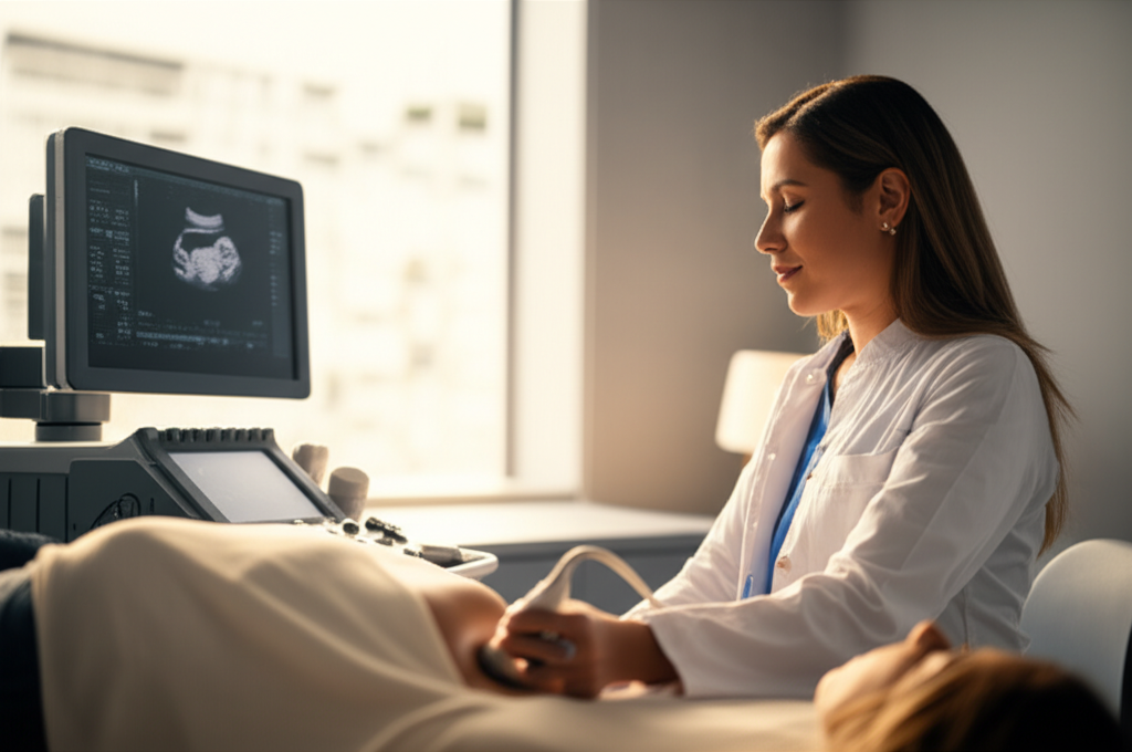 Esse exame é particularmente eficaz para visualizar órgãos sólidos e estruturas cheias de líquido. Nesse sentido, é excelente para diagnosticar condições como cálculos na vesícula biliar, cistos no fígado ou nos rins, pancreatite e apendicite. Ademais, a ultrassonografia com Doppler pode ser usada para avaliar o fluxo sanguíneo nos vasos abdominais, identificando possíveis obstruções ou anormalidades. Por ser um procedimento seguro e rápido, é a escolha ideal para uma avaliação inicial abrangente, guiando a necessidade de investigações mais complexas, se necessário.